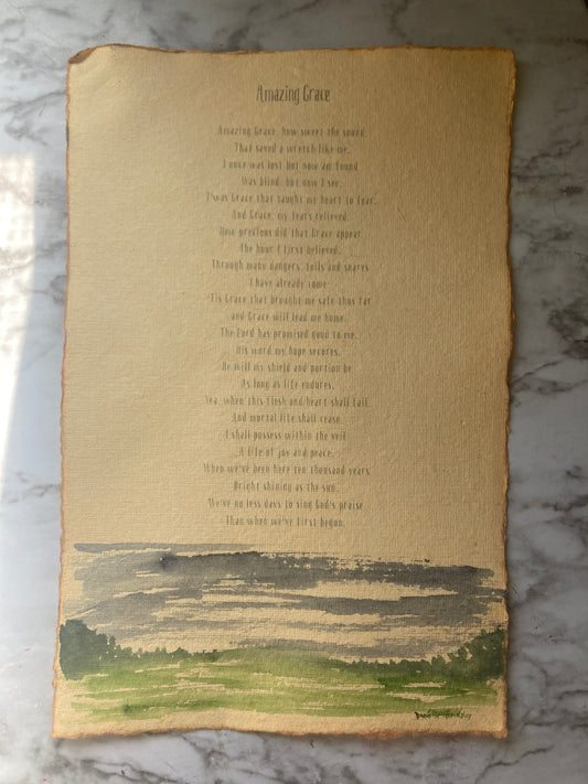 Amazing Grace Blue and Magenta Watercolor Bookmark